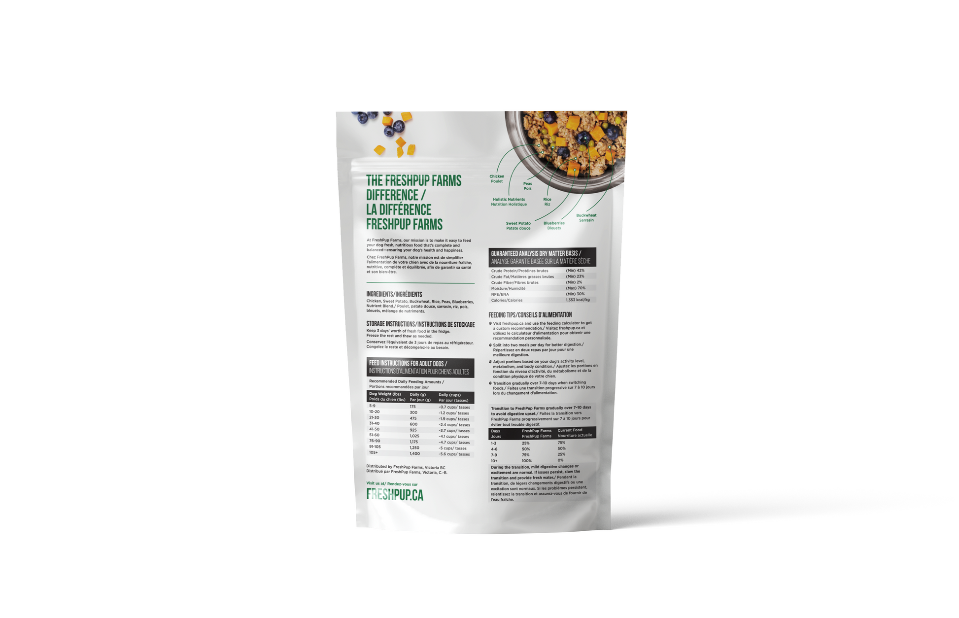 FreshPup meals are made with real, fresh ingredients in consultation with nutritional specialists, giving your dog balanced, science-backed nutrition without the fillers, preservatives, and low-quality ingredients found in kibble. Fresh food supports better digestion, higher energy levels, a healthier coat, and overall vitality, so your dog feels and performs their best. Delivered frozen straight to your door, FreshPup makes switching from kibble simple, convenient, and completely worry-free