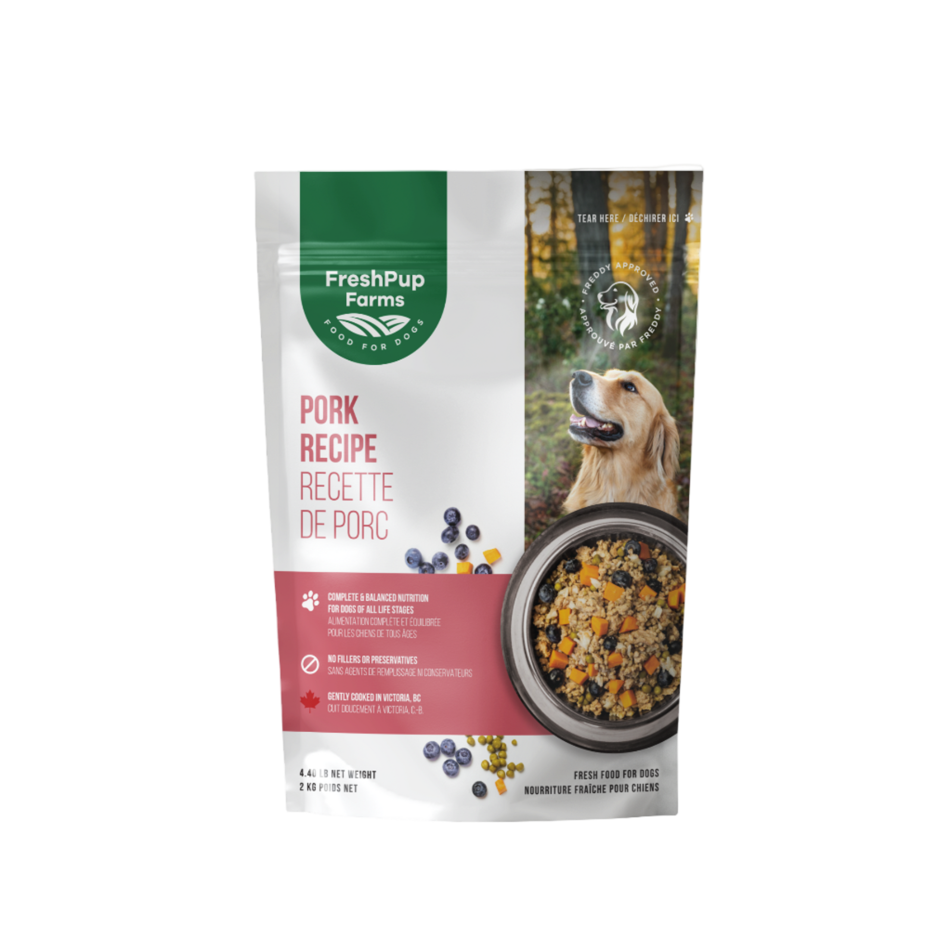 FreshPup meals are made with real, fresh ingredients in consultation with nutritional specialists, giving your dog balanced, science-backed nutrition without the fillers, preservatives, and low-quality ingredients found in kibble. Fresh food supports better digestion, higher energy levels, a healthier coat, and overall vitality, so your dog feels and performs their best. Delivered frozen straight to your door, FreshPup makes switching from kibble simple, convenient, and completely worry-free
